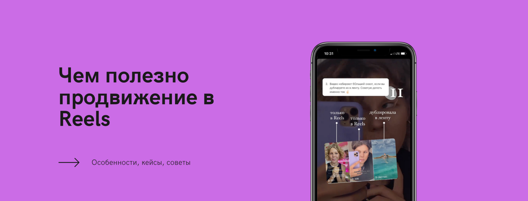Публикуйте Reels в ленту профиля и анонсы в stories. Это позволит набрать просмотров и реакций от лояльной аудитории, а алгоритмы Инстаграм, в свою очередь, могут посчитать видео интересным и добавить его в «Рекомендованное». А чтобы подписчики открывали/переходили по видео, сделайте интригующую/забавную обложку.